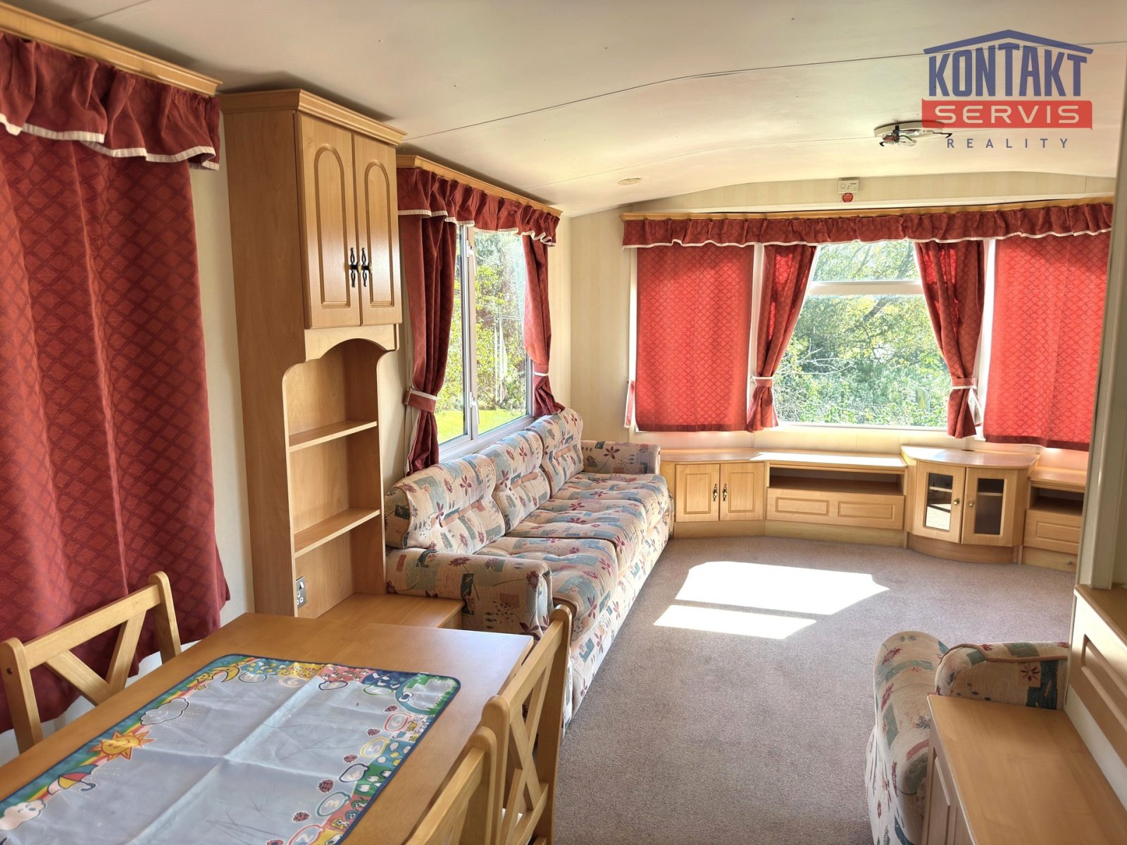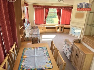 Nabízíme ke koupi kompletně vybavený mobilní dům o velikosti 11 × 3,7 m s užitnou plochou 40m2. Vnitřní uspořádání zahrnuje prostorný obývací pokoj, oddělená kuchyně s jídelním koutem, 2 ložnice, toaletou a koupelnu se sprchovým koutem. Mobilní dům je zateplený, vybaven plastovými okny s izolačními skly, díky čemuž je ideální i pro celoroční provoz.