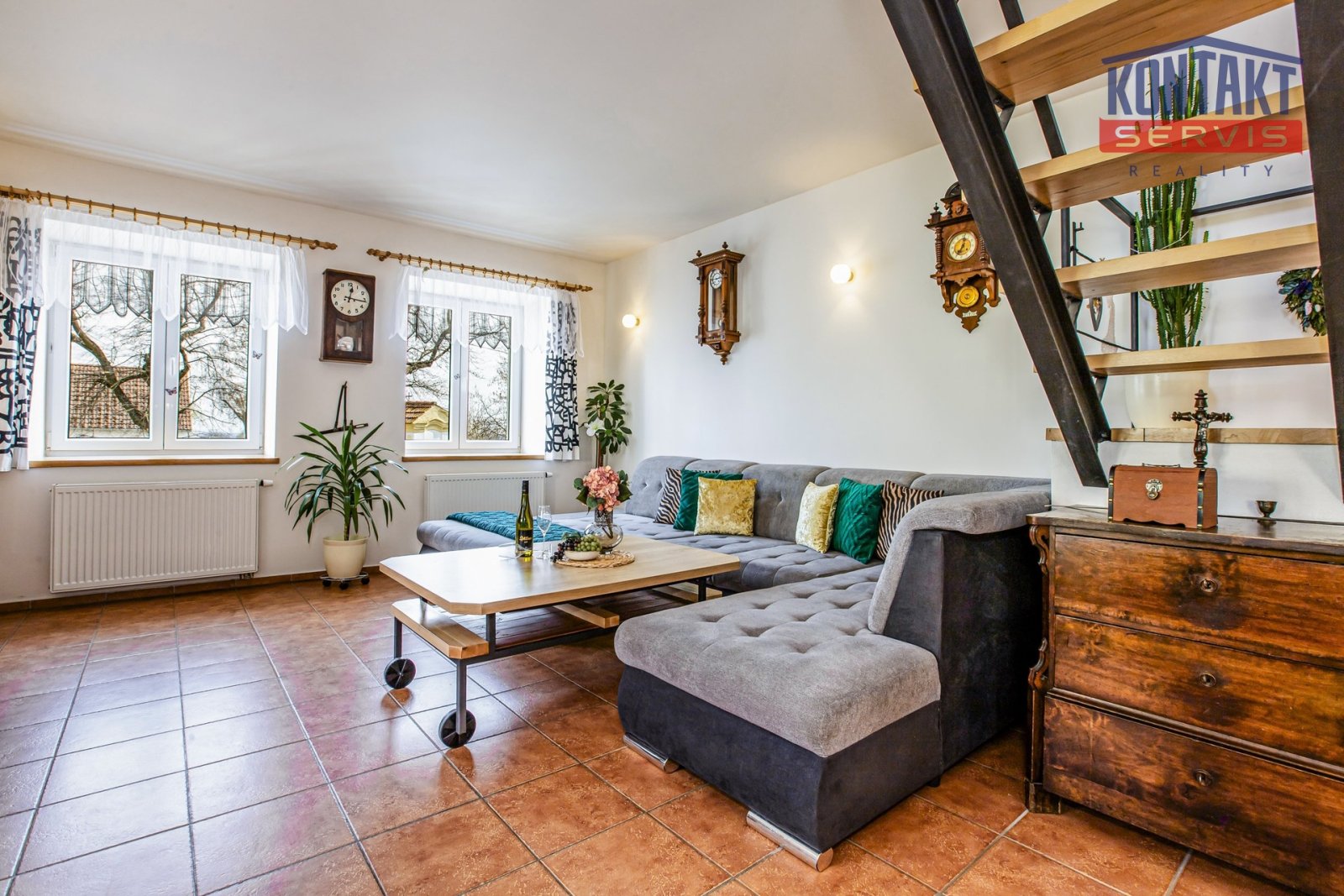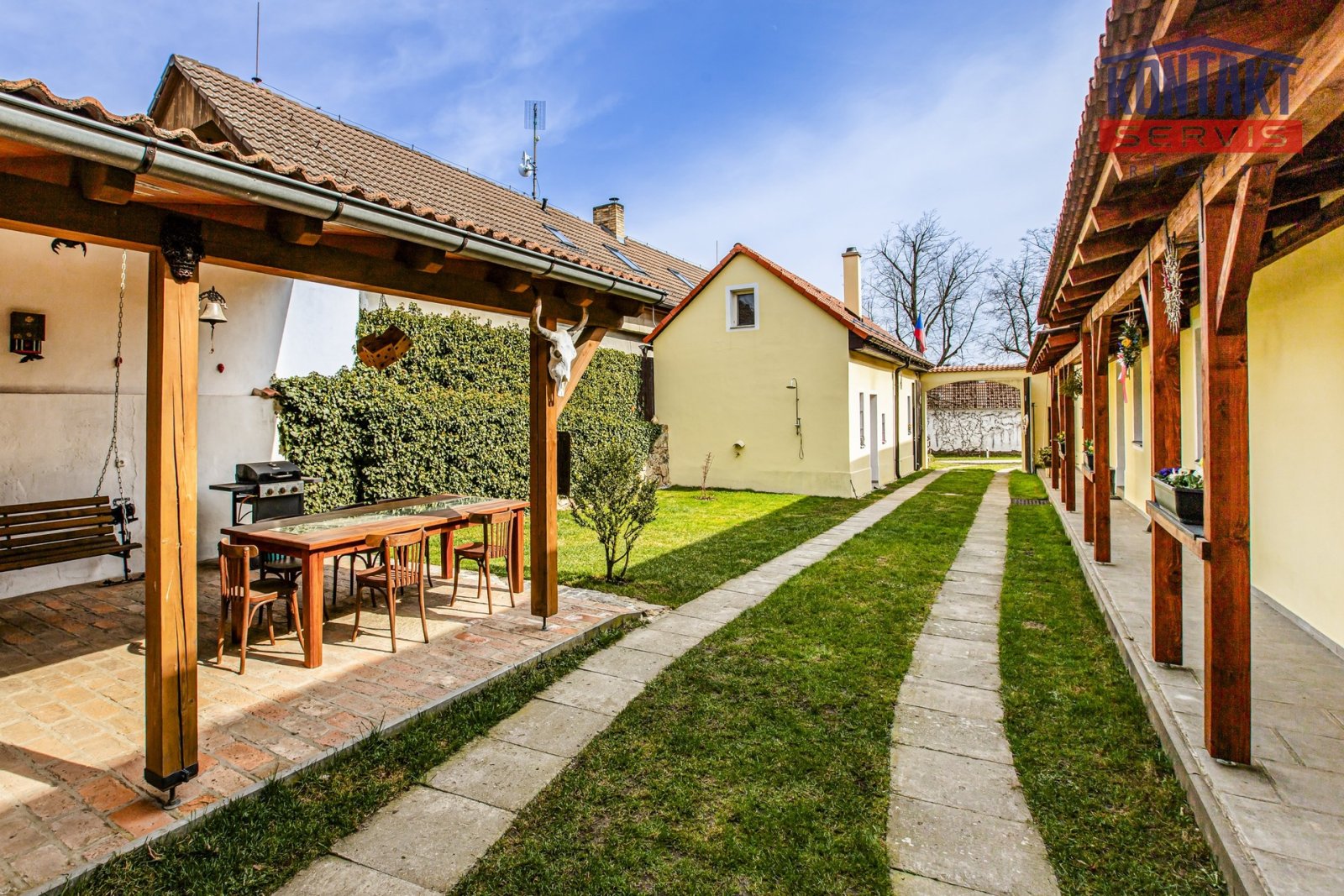 Nabízíme ke koupi kompletně rekonstruovanou vesnickou usedlost v obci Dunajovice, která se nachází necelých 6 km od lázeňského města Třeboň a 20 minut jízdy od jihočeské metropole. Hlavním obytným prostorem je samostatná jednotka o dispozici 5 + kk, přičemž v přízemí se nachází velký obývací pokoj spojený s kuchyní, samostatná ložnice a prostorná koupelna. V podkroví jsou pak tři pokoje a druhá koupelna se sprchovým koutem a toaletou. V hlavní budově na obytnou část navazují další prostory, které lze buď využít jako technické zázemí domu nebo je zde možno vybudovat další bytové jednotky (veškeré přípravy rozvodů jsou provedeny). V uzavřeném dvoře se nachází krásná pergola a samostatně stojící vejměnek s navazující kotelnou. Půdorys stavení uzavírá prostorná a průjezdná stodola. Za domem je k využití rozlehlá udržovaná zahrada s vedlejšími stavbami (krytá parkovací stání pro tři auta, kolna, přístřešek na dřevo apod.). Dům je napojen na obecní vodovod a kanalizaci, k dispozici je i vlastní studna. Zavedena je také elektřina 230/400 V. Vytápění je zajištěno vlastním kotlem na dřevoplyn s rozvodem do podlah nebo radiátorů. Celková výměra pozemků činí 1 633 m2. Tato výjimečná nabídka je vhodná pro ty, kteří touží po velkém historickém stavení v novém kabátě. Podrobnosti k zakázce a osobní prohlídku Vám rádi zprostředkujeme.