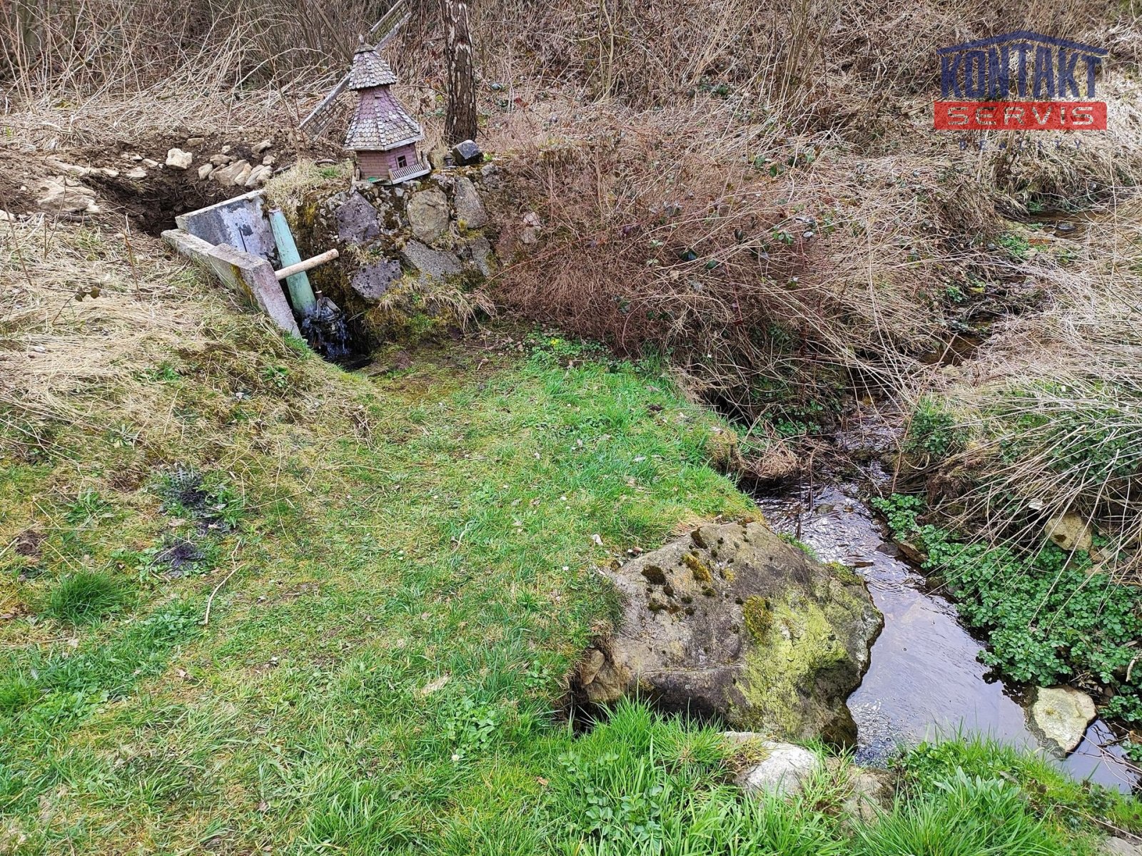 Na pozemek lze přivést el. přípojku. Voda je dostupná ze studánky vzdálené cca 200 m.